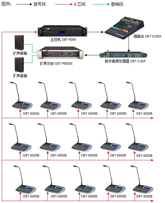 基礎話筒發言管理,代表人員檢驗與出席登記,電子表決功能,脫離電腦與中控的自動視像跟蹤功能,資料分配。 系統架構